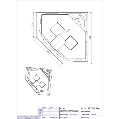 Maße Badewannenträger (H x B x T): 57 cm x 144 cm x 144 cm
