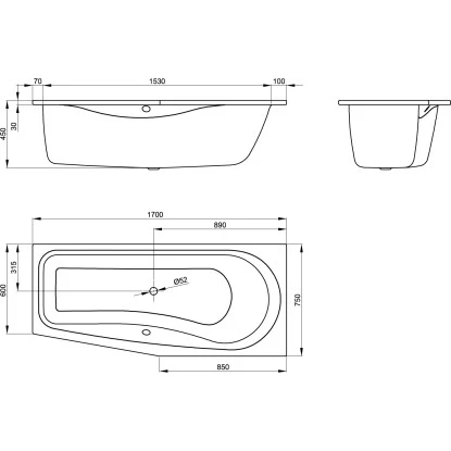 Mit der eleganten Badewanne Luna können Sie auch unkonventionell geschnittene Bäder individuell und komfortabel ausstatten. Die Wannentiefe von 45 cm lässt auch große Personen entspannt baden und komplett in die Wanne eintauchen. Der am schrägen Wannenrand angebrachte Überlauf ermöglicht 6 cm mehr Wasserstand. Mit ihrem schräg zulaufenden Fußende sorgt die Bette Luna sogar außerhalb der Wanne für mehr Bewegungsfreiheit.