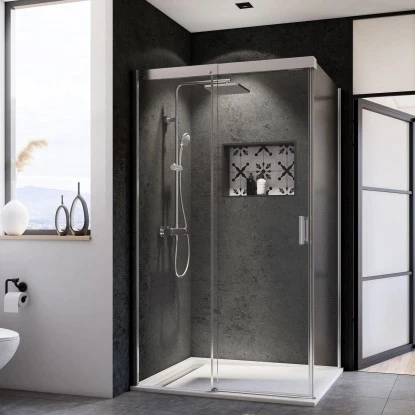 Die Seitenwand Panorama für Schiebetür besticht durch ihr modernes Design und ihre großen Glasflächen. Die Wandanschlußprofile werden ohne sichtbare Verschraubungen befestigt, dies erleichtert die Reinigung und Pflege.