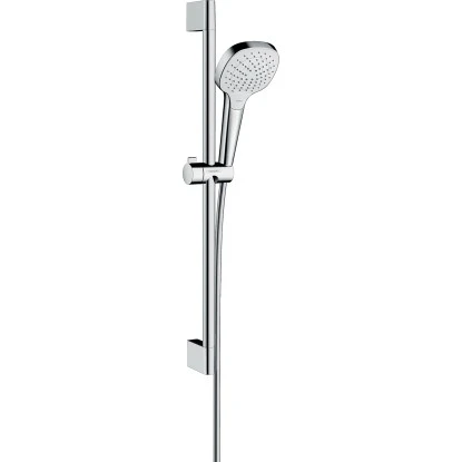 Das Croma Select E Vario Set ist durch den schicken Weiß/Chrom-Look ein Hingucker in jedem Badezimmer. Das Brausestangenset kann mit vielen verschiedenen Armaturen kombiniert werden.