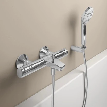 Der Ideal Standard Badethermostat Ceratherm T25 bewährt sich mit ergonomischen Design und einem unvergleichlichen Maß an Haltbarkeit, Sicherheit und Leistung. Mit Hilfe der Umschaltung wechseln Sie automatisch zwischen Brause und Wanne.