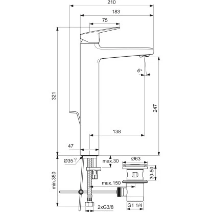 – Einhebel-Waschtischarmatur mit verlängertem Sockel H250 DN 15.