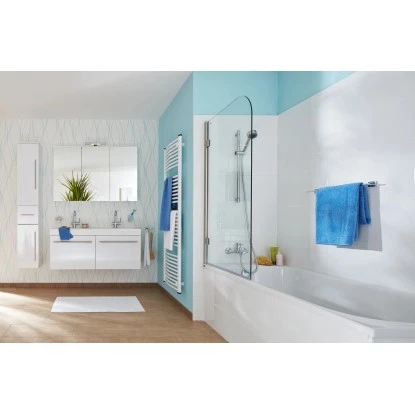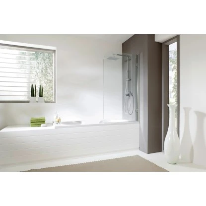 Der 1-teilige OBI Selection Badewannenaufsatz Varro I besteht aus einem sich nach außen öffnenden Element mit der Abmessung 140 cm x 80 cm. Die stabilen und langlebigen Aluminiumprofile und Scharniere in Edelstahloptik geben der Serie Varro einen edlen Look. Die Scheibe besteht aus 8 mm Sicherheitsglas. Der beidseitige Abperleffekt sorgt für klare Scheiben und minimiert den Pflegeaufwand. Der Badewannenaufsatz ist beidseitig montierbar. Im Lieferumfang ist das Montagematerial enthalten.