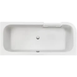Das feste Verbundmaterial ist sehr belastbar und verleiht der Wanne eine elegante Optik. Der polierte Key-Stone besitzt eine geringe Wärmeleitung und sorgt so dafür, dass das Badewasser länger warm bleibt. An den Längsseiten ist ein 10-mm-dickes Sicherheitsglas eingelassen und verklebt.