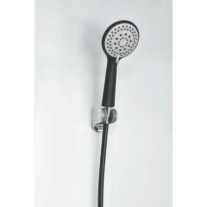 Die moderne Sanotechnik Komplettduschkabine Sky 1 CL73 überzeugt durch das ausgefallene Design im Schwarz-Weiß Look und ist ein absoluter Blickfang in Ihrem Badezimmer. Ein optisches Highlight ist vor allem das edle Glasdach der Duschkabine. Diese Dusche ermöglicht ein unvergessliches Duscherlebnis und lässt Sie Ihre Alltagssorgen vergessen. Die großflächigen Massagedüsen sorgen für die ideale Entspannung nach einem stressigen Tag. Zudem ist die Dusche mit einer Überkopfbrause sowie mit einer verstellbaren Handbrause mit 3 Funktionen ausgestattet. Mit Hilfe des Einhebelmischers können Sie bequem zwischen den beiden Brausen umschalten. Auf der integrierten Glasablage ist außerdem Platz für Ihre Duschutensilien. Dank des Quick Line Montagesystems wird ein schneller und leichter Aufbau der Duschkabine garantiert.