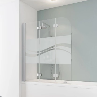 Mit diesem modernen Badewannenaufsatz können Sie Ihre Wanne in eine Dusche verwandeln. Bei Bedarf werden die drei Echtglaselemente (ESG) mit einer Stärke von 5 mm mühelos ausgeklappt und schon kann geduscht werden, ohne dass Wasser im gesamten Badbereich verteilt wird.