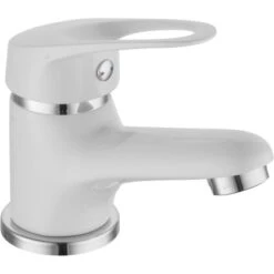 Die Einhebelarmatur Athen in Weiß vervollständigt Ihr Badezimmer durch einen stylischen Akzent. Dank der Farbkombination aus Weiß und Chromfarben passt der Einhebelmischer hervorragend zu Ihrem Weißen Waschbecken. Die verChromten Oberflächen auf Hebel und Hahn setzen hierbei dezente Glanzpunkte. Durch die flache Formgebung und das Design bekommt Ihr Badezimmer einen futuristischen Touch.