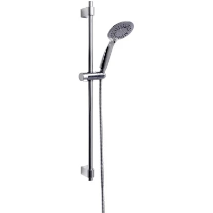 Das ideale Duscherlebnis ganz nach Ihren Wünschen bietet das Wenko Brauseset Young Chrom. Das Set besteht aus einer Duschstange, einem Duschschlauch und einer Handbrause mit 5 verschiedenen Wasserstrahl-Arten, die individuell ausgewählt werden können. Die Duschstange ist aus hochwertigem, rostfreien Edelstahl gefertigt und misst in der Länge 66 cm bei einem Durchmesser von Ø 1,9 cm. Sie verfügt über zwei Wandhalter, von denen einer verschiebbar ist. So können unter Umständen bestehende Bohrlöcher verwendet oder alternativ verdeckt werden. Kaum Wünsche offen lässt der moderne Duschkopf. Wählen Sie aus 5 Funktionen und genießen Sie ein wohltuendes Duscherlebnis. Entspannen Sie unter einem warmen Regenschauer oder mit der belebenden Sprühfunktion. Ein kräftiger Massagestrahl sorgt für zusätzliche Wellness-Momente. Auch Kombinationen aus den verschiedenen Funktionen sind möglich, ganz nach Ihren Bedürfnissen.